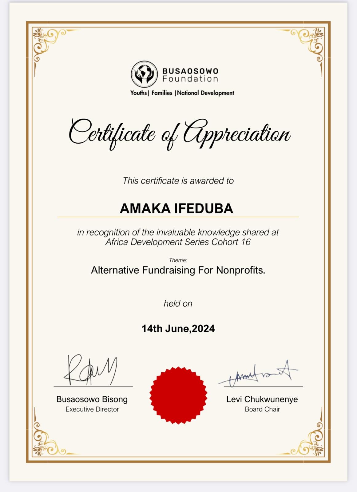 Invited as Guest Speaker to African Development Series to discuss the Power of Storytelling in Fundraising.